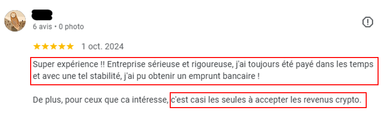 De plus, pour ceux que ca intéresse, c'est casi les seules à accepter les revenus crypto.